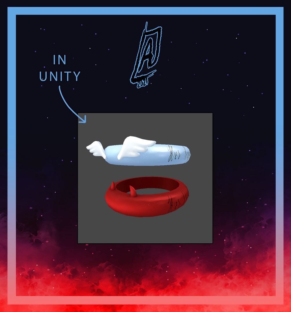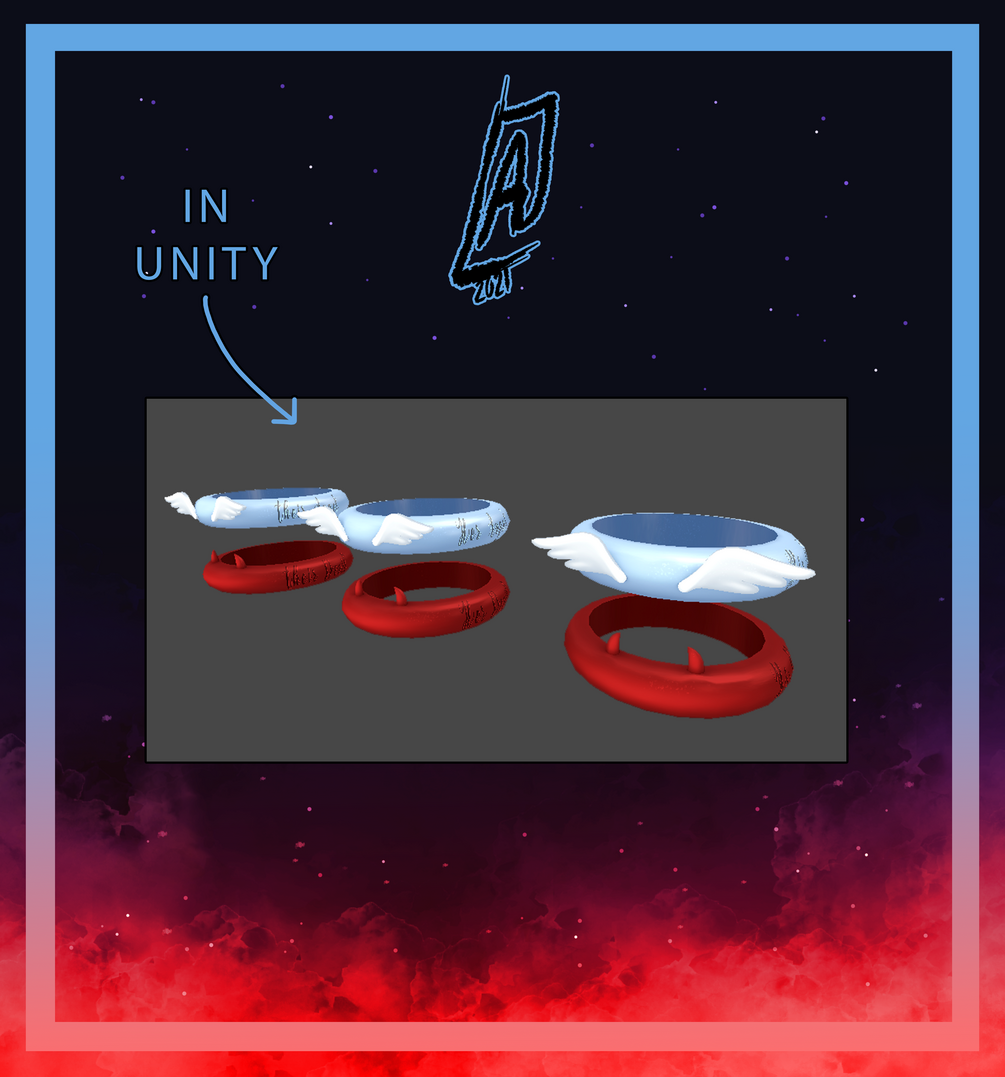 - 1,788 tris [ Full ring set ] / 620 tris (Demon Ring) / 1,168 tris (Angel Ring)